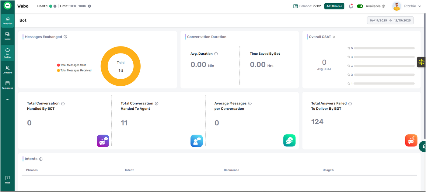 Total Conversations Handled by Bot: See the total number of conversations the bot has successfully managed.