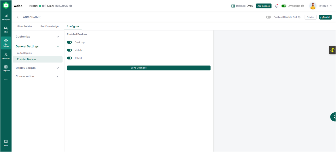 How to Enable the Bot Only on Specific Devices in Wabo?
