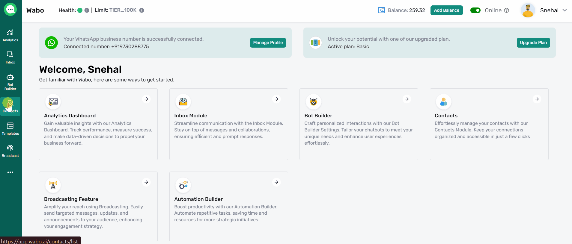 Review and map the file's Column Names with contact fields in Wabo if they are not automatically mapped.
