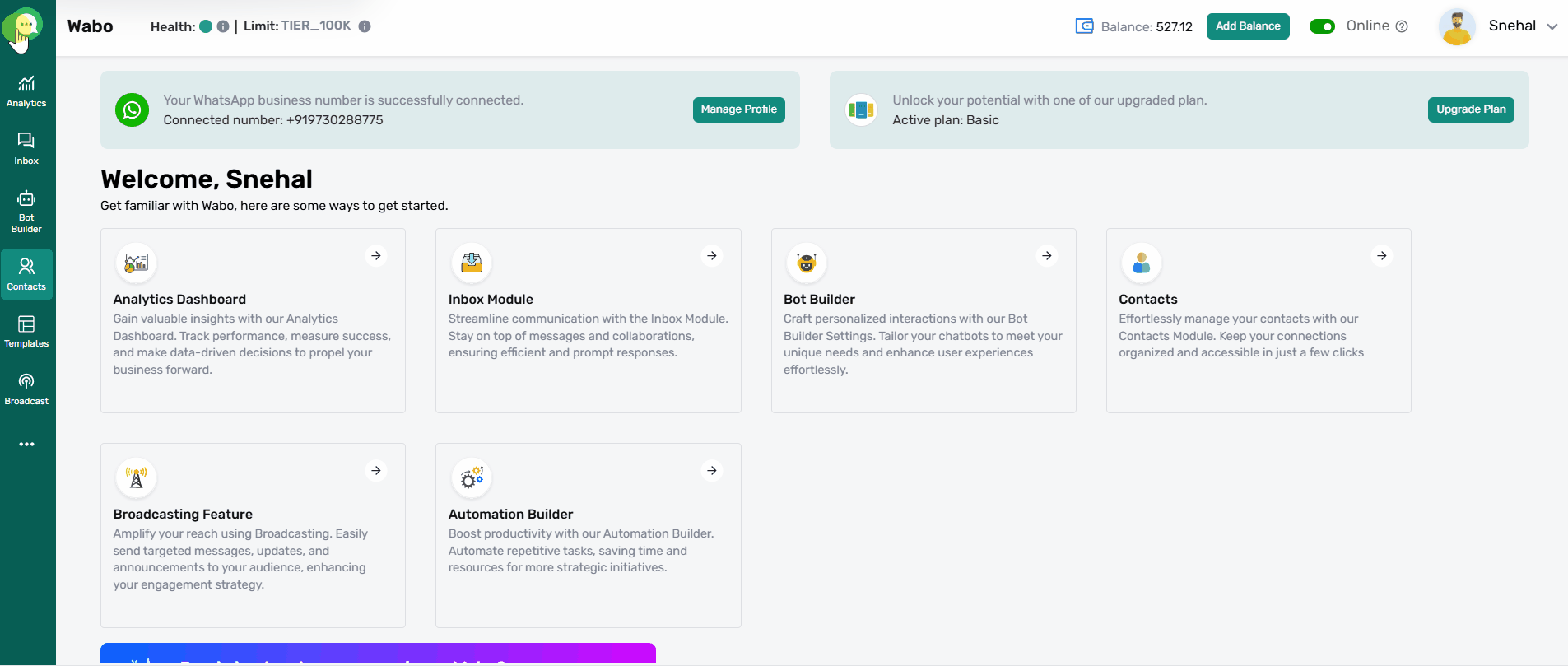 Wabo's filtering feature allows you to quickly narrow down conversations based on different criteria such as chat status, agent assignment, labels, and more. This helps in efficiently managing a high volume of conversations and finding specific chats.