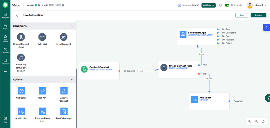 In this use case, we will walk you through setting up an automation flow in Wabo.ai where: